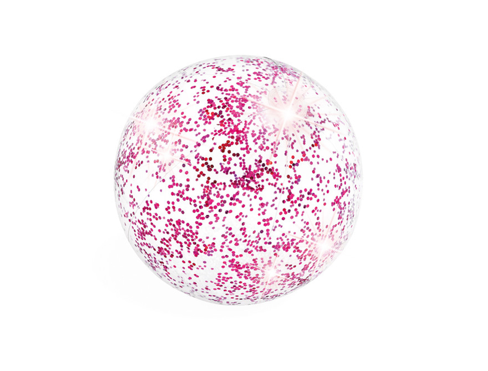 Этот пляжный мяч диаметром 71 см наполнен золотыми или розовыми блёстками, которые перемещаются внутри мяча. Солнечные лучи отражаются от блёсток и переливаются всеми цветами радуги.