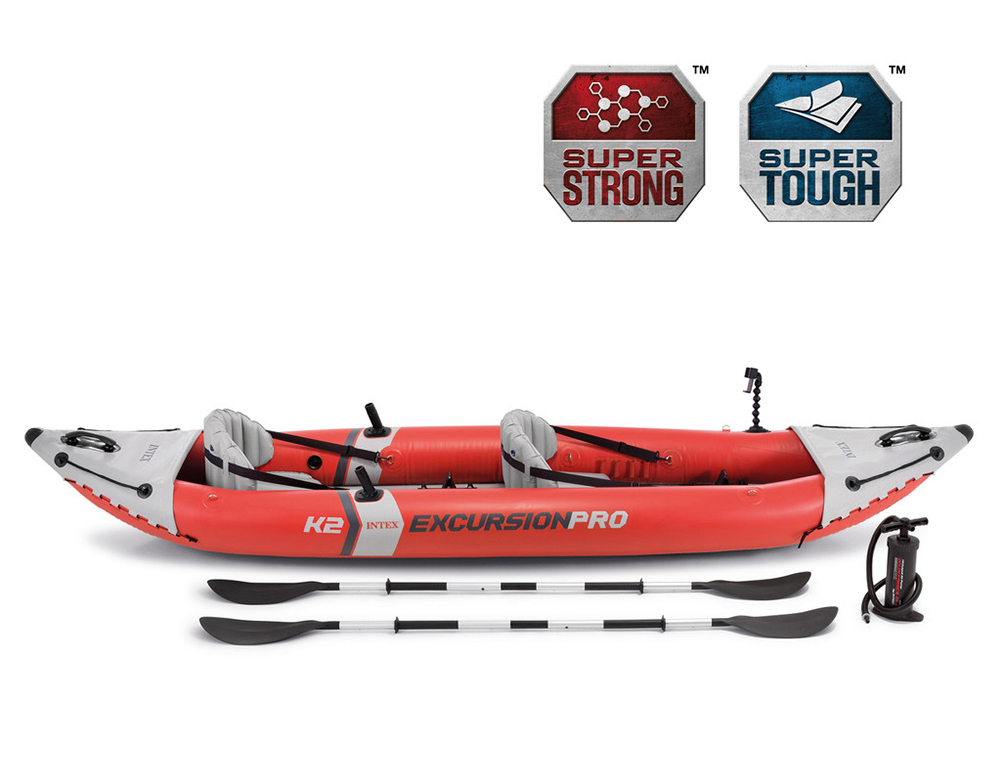 Байдарка Intex Excursion Pro К2 оснащена такими функциями, как регулируемые сиденья и встроенные подставки для ног, чтобы вам было комфортно. Кроме того, с каждой стороны есть держатели для удочек, чтобы вы могли рыбачить, не держась за весло. Также спереди есть водонепроницаемая сумка, в которую можно положить все необходимое для выхода на воду. Поскольку он надувной, его легко перевозить в машине или в кузове грузовика. Даже в надутом состоянии его легко переносить по суше или на пляже благодаря ручкам спереди и сзади. В комплект байдарки Intex Excursion Pro К2 входят два алюминиевых весла и воздушный насос. Здесь есть всё необходимое, чтобы провести день на озере, реке или в океане.